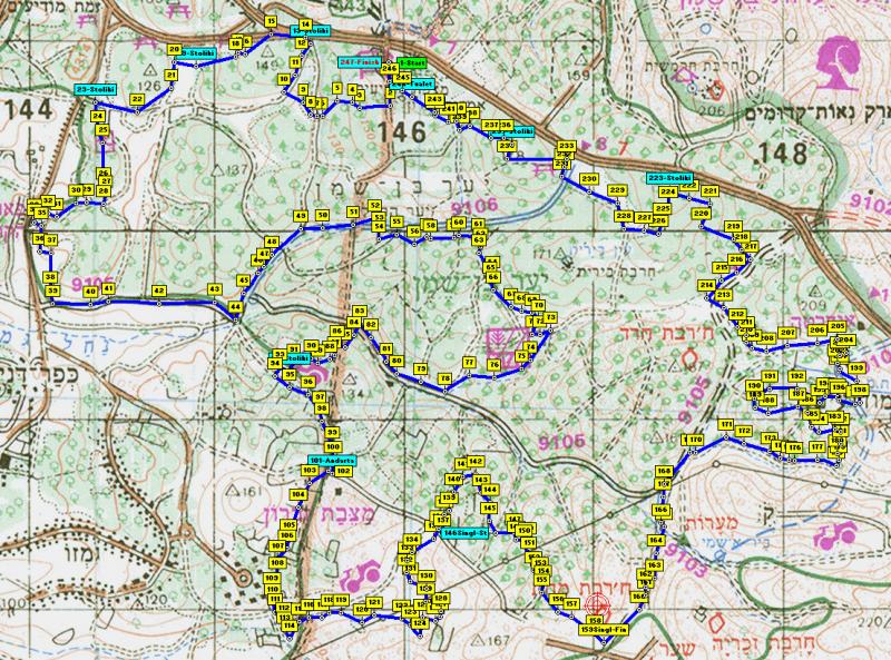 •   Начало маршрута – стоянка Мицпе Модиин леса Бен Шемен, см. карту.