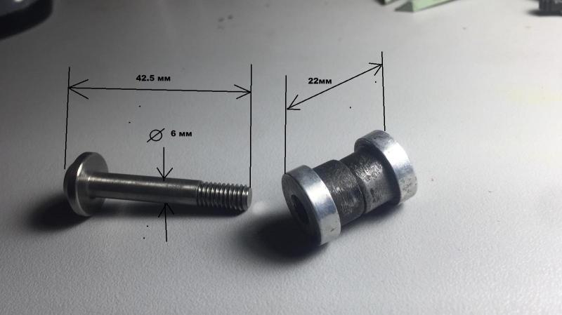 Это два аллюминиевых ролика и втулка которая вставляется в верхнее ухо амортизатора. А потом в эту втулку вставляются эти ролики. болт не нужен.