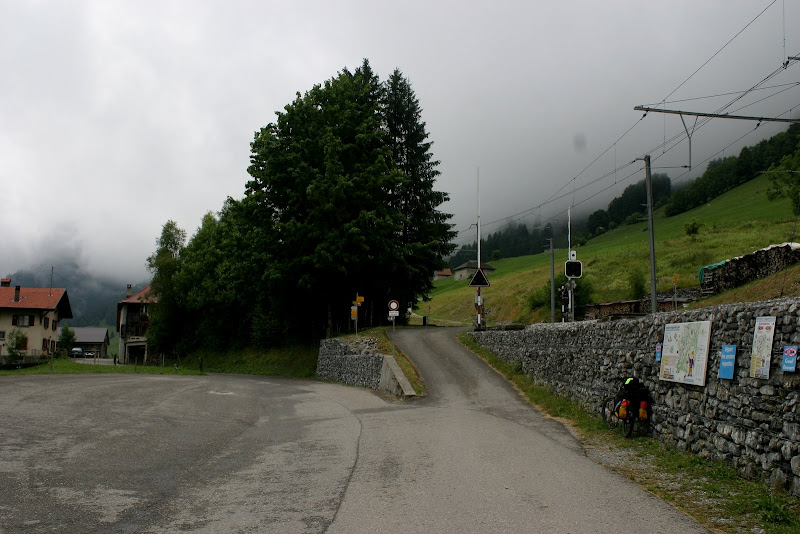 На полпути я остановился у речки перекусить и отдохнуть. Вскоре я докатил до деревни, в которой указатель мне предложил на выбор поехать красивой дорогой, но с набором 300м на 7км, или поехать по обычной дороге с машинами, но с меньшим набором. Я выбрал второй вариант, помня, что за Цвейсименом меня ждет "запланированный" перевал, и последние 20км мое одиночество было нарушено моторизированными транспортными средствами, что, однако, не сильно портило общего впечатления.