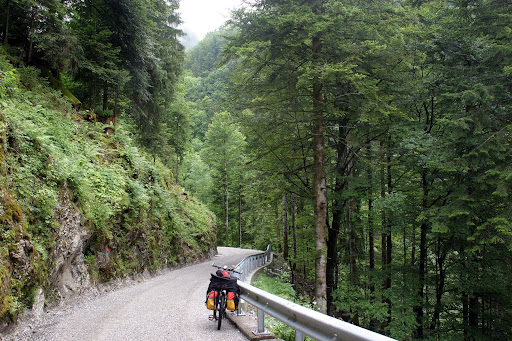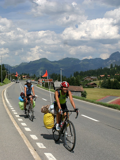 На полпути я остановился у речки перекусить и отдохнуть. Вскоре я докатил до деревни, в которой указатель мне предложил на выбор поехать красивой дорогой, но с набором 300м на 7км, или поехать по обычной дороге с машинами, но с меньшим набором. Я выбрал второй вариант, помня, что за Цвейсименом меня ждет "запланированный" перевал, и последние 20км мое одиночество было нарушено моторизированными транспортными средствами, что, однако, не сильно портило общего впечатления.