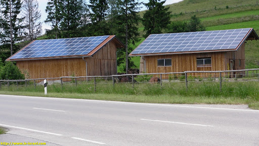 Вкручивая по асфальту и рассматривая все и вся по сторонам, обратили внимание, что, несмотря на обделенность солнечными днями, экономные немцы все чаще пользуются дармовой электроэнергией вырабатываемой солнечными батареями, занимая ими бесполезные крыши домов и сараев.