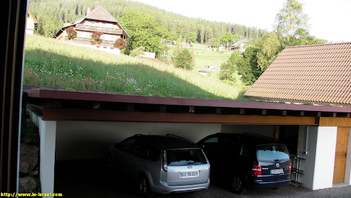 И так, незаметно пролетело время и мы в Schwarzwald (Шварцвальд). Здесь не только природа значительно отличалась от  Alps (Альп), но и творения рук человеческих. Почти все дома покрыты не штукатуркой с росписью, а маленькими пластинкими из дерева. Таким оказался и наш приют, расположенный на краю леса.